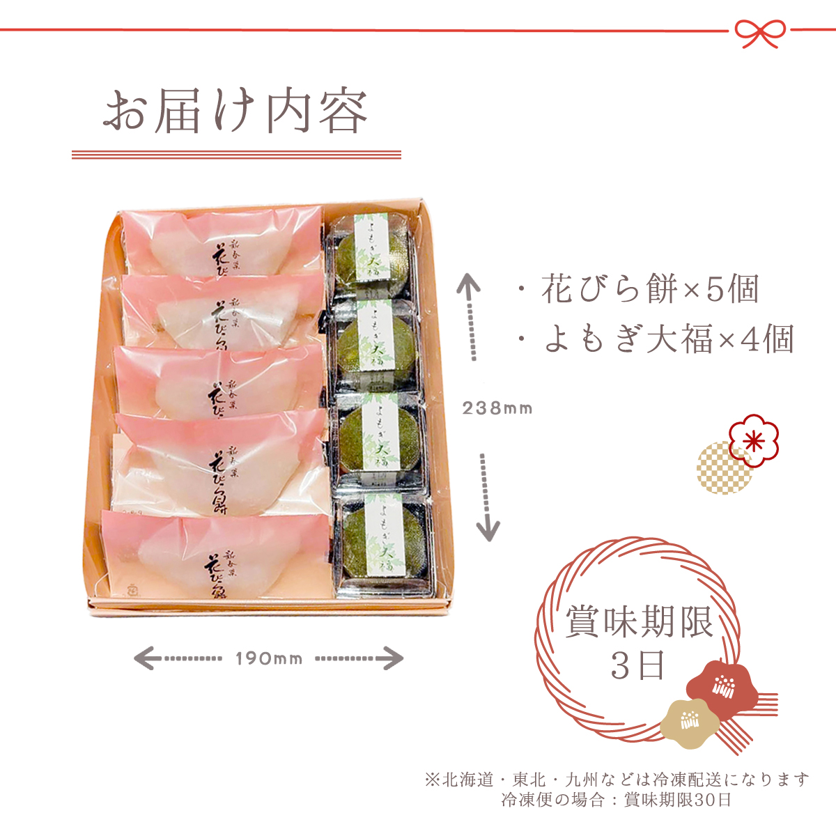 お届け内容 | 花びら餅x5 よもぎ大福x4 |