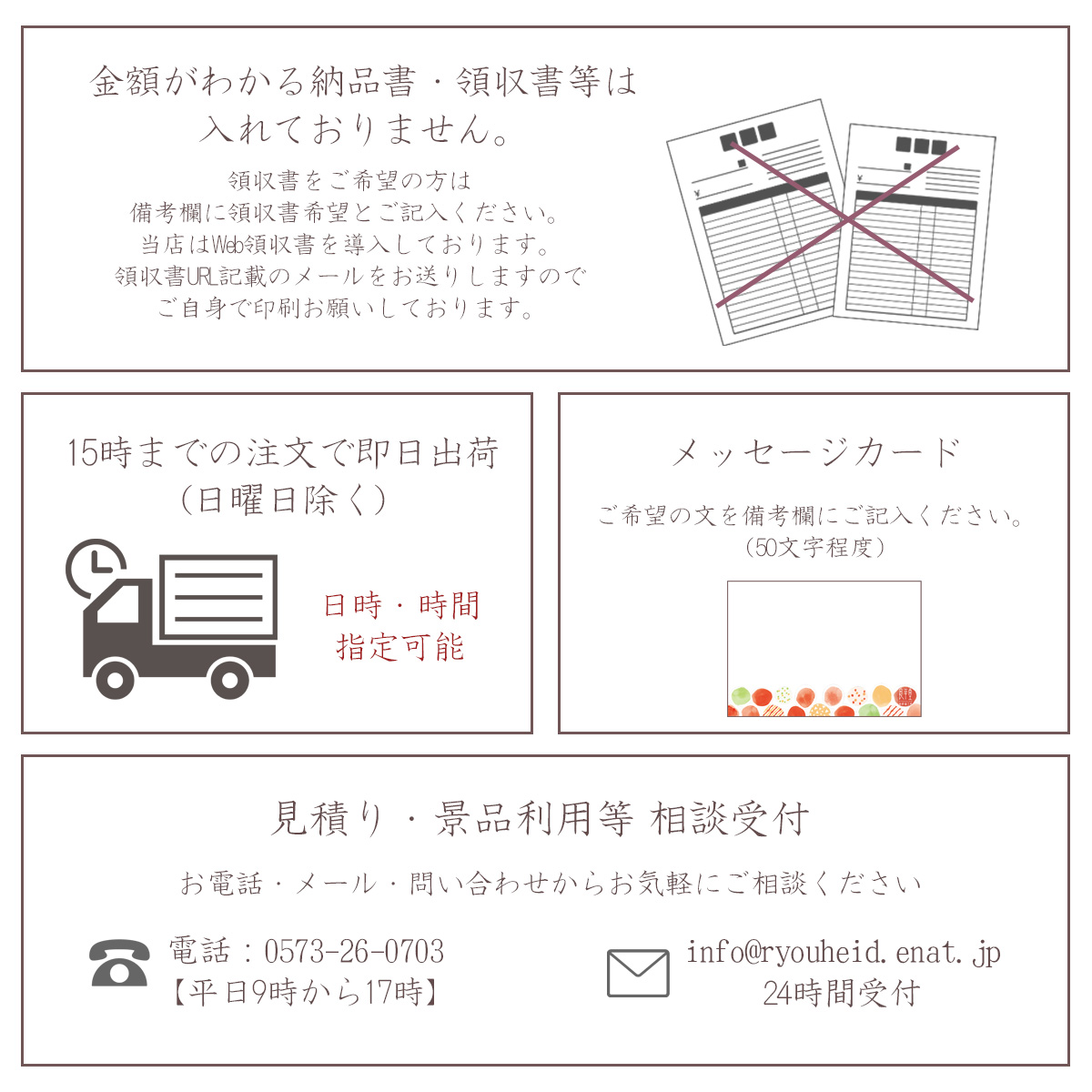 | 製造者 | 有限会社 良平堂 岐阜県恵那市長島町中野840 【製造責任者】 近藤修次 |